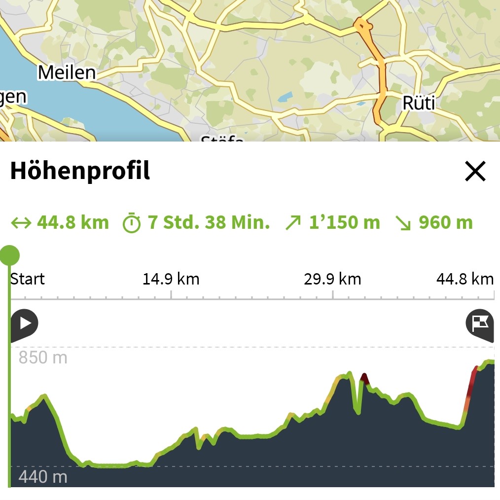 Da uns die Strecke zum Hotel Dolder in Zürich und dann über den Zürichberg ins Glatttal so gut gefallen und die Rösti so gut geschmeckt hat, sind wir diese Strecke seither noch ein paar Mal geritten.