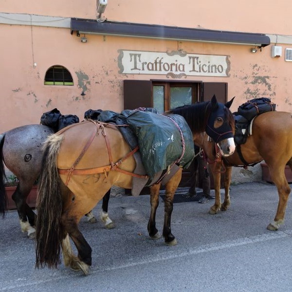 An einem Dienstag im Mai 2018 trafen wir uns um sechs Uhr früh im Stall, sattelten und ritten los. Die Route stand grob fest, wir hatten einige Kontaktadressen und alles im Gepäck, um unabhängig zu sein: vom Schlafsack, Zelt und Kocher bis hin zum mobilen Weidezaun. Wir durchquerten als erstes die Schweiz bis zur italienischen Grenze. Am Zoll in Chiasso brauchte es einige Überzeugungskraft, bis die Zöllner glaubten, dass man Pferde nicht in einem Anhänger über die Grenze bringen muss, sondern dass man sie auch im Sattel passieren kann.