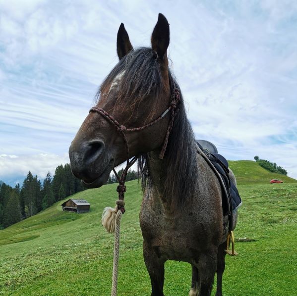 Endlich hat es geklappt! Schon 2019 wollten wir vom Churer Rheintal ins Prättigau reiten. Wir kamen allerdings nur bis auf die Alp Stams. Der Abstieg über die Sayser Alp zum Laubenzug war nicht möglich. Es lagen noch zu hohe Schneeverwehungen, deren Oberfläche gefroren waren, unter denen aber bereits Schmelzwasser durchfloss. Die Pferde brachen durch den Schnee ein und weil wir den Weg noch nicht kannten, war es uns zu riskant. Wir assen auf der Alp einen Salsiz und ein Stück Käse, tranken ein Bier, genossen die Aussicht runter ins Rheintal und ritten zurück nach Trimmis.
