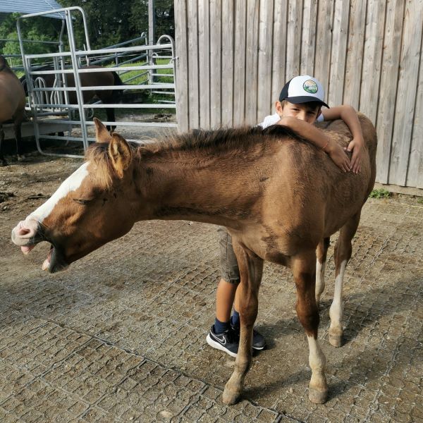 Bávaro Alpino (de Baviera Geronimo × Carmera Cimarrona) ist im April 2021 zur Welt gekommen, am Geburtstag von Anjas Vater. Wir haben ihn zum ersten Mal gesehen, als er nur wenige Stunden alt war, und er ist uns sofort munter entgegenkommen. Dieses freundliche Wesen – Menschen und Pferden gegenüber – zeichnet den kleinen Herrn aus. Egal was wir mit ihm unternommen haben, egal was wir im Stall zu tun hatten, egal wer im Stall zu Besuch war, er war immer bei allem mit dabei und konnte nicht genug gestreichelt werden.