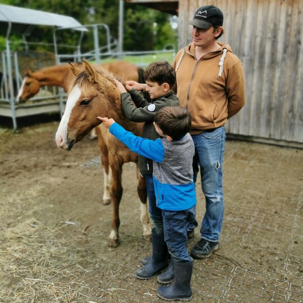 Wir haben ihn kürzlich auf der Fohlenweide besucht, wo er mit einem anderen Junghengst zusammen aufwachsen darf. Den Sommer verbringen die beiden mit einer Rinderherde auf einer Alp. Fast ein Jahr lang haben wir ihn nicht mehr gesehen. Wie Bávaro reagiert hat? Er ist zu uns gekommen und hat sich ausgiebig streicheln und knuddeln lassen. Eine wirklich schöne Erfahrung, wenn man merkt, dass die gemeinsamen sechs Monate, die wir mit den Fohlen verbringen, ihnen genauso im Gedächtnis bleiben wie bei uns.