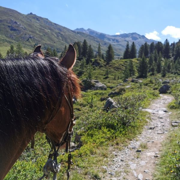 So starteten wir am sechsten Tag erholt unsere Tour ins Münstertal. Von San Jon ging es erst das Tal nach S-Charl hoch und von dort stieg der Weg sanft an bis zur Alp Astras. Auf Astras machten wir eine kurze Mittagspause und ritten dann weiter durch den God Tamangur, den höchstgelegenen zusammenhängenden Arvenwald Europas und ein wunderschönes Fleckchen Erde.