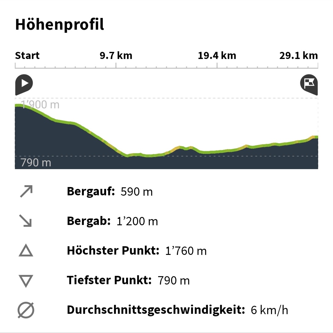 Bald hatten wir den höchsten Punkt erreicht und begannen den Abstieg ins Münstertal. Zufrieden damit, wie gut wir vorangekommen waren, kehrten wir auf der Alp Champatsch ein. Wir waren ja quasi schon im Münstertal. Weit gefehlt! Wir hatten nicht auf dem Schirm, wie viel tiefer der Talboden liegt.
