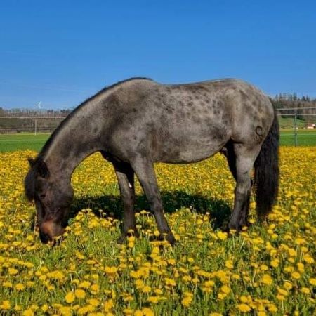 Muchacho wurde schon als Fohlen von seiner jetzigen Besitzerin gekauft und seit er ein Jahr alt ist, lebt er bei ihr in der Nähe von Memmingen. Muchacho kann die Herkunft von Geronimo nicht leugnen. Er ist ausgesprochen freundlich, neugierig und unerschrocken. Und seine Besitzerin hat ihn in seinem Charakter noch weiter bestärkt. Als Junghengst liess er sich von den Kindern seiner Besitzerin bemalen und absolvierte das gesamte Repertoire an Bodenarbeit, noch bevor er zugeritten wurde.