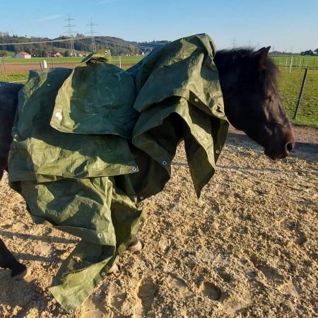 Und tatsächlich handelt es sich bei allen Fotos um das gleiche Pferd, um einen Rappen im Winter, um einen hellen Blauschimmel im Sommer und um ein Pferd in allen möglichen Grau-Nuancen im Frühling und Herbst!
