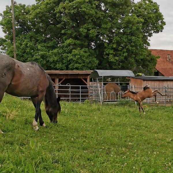 Seither begeistert uns diese kleine Stute. Sie ist ausgesprochen lebensfreudig. Schon am ersten Tag hat sie sich an den ersten Bocksprüngen versucht und hat in der ersten Wochen ganz in Working-Equitation-Manier alles entweder im Schritt oder im Galopp gemacht. Galoppwechsel? Von Anfang an kein Problem!